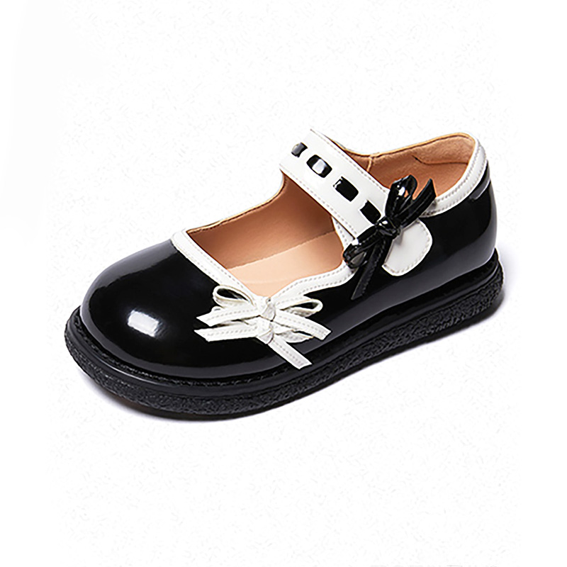 New belt buckle black and white double patchwork mary Jane bow desig kid shoes