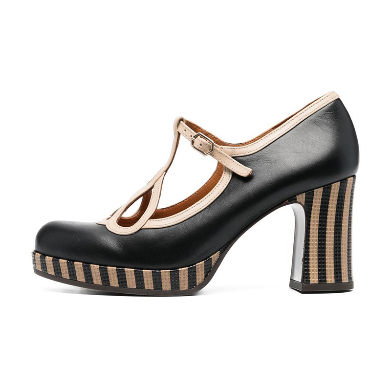 New trend round top chunky heel vintage mary jane leather women's shoes
