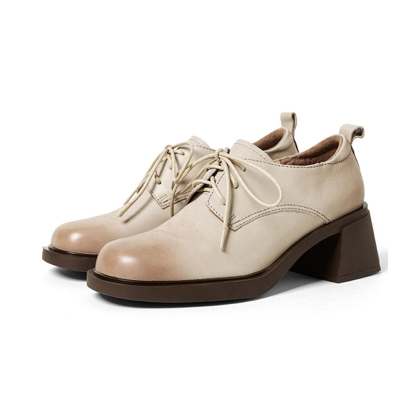Fashion classics wholesale custom logo round-toed thick heels small leather shoe
